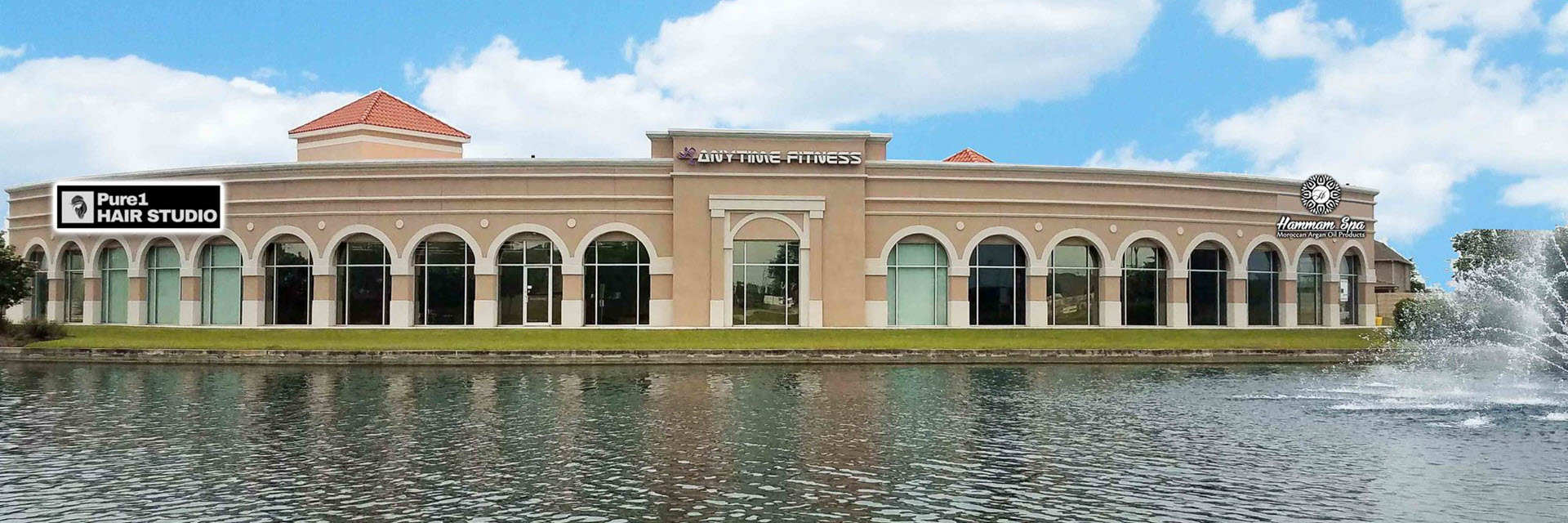 - Lake front retail center with floor-to-ceiling glass windows
